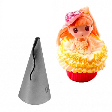 Бесшовная маленькая насадка идеально подходит создания кремовых рюшей, оборок и воланов.